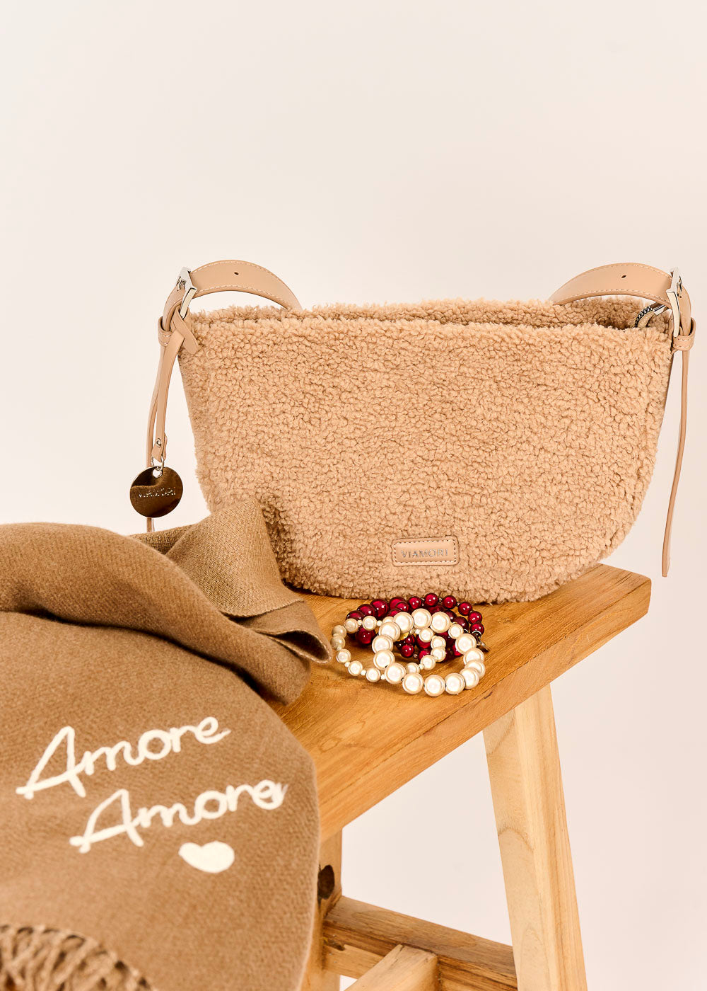 Setzen Sie ein kuscheliges Statement mit dieser charmanten Teddy-Flap Bag in einem sanften Beige oder Camel-Ton. Das luxuriöse Teddyfell-Material macht sie zum absoluten Trend-Accessoire für die kalte Jahreszeit und verspricht einen unwiderstehlichen Tastsinn. Dank des verstellbaren Riemens ist sie die perfekte Crossbody-Bag für mühelosen Komfort, die jeden Herbst- und Winter-Look sofort aufwertet.