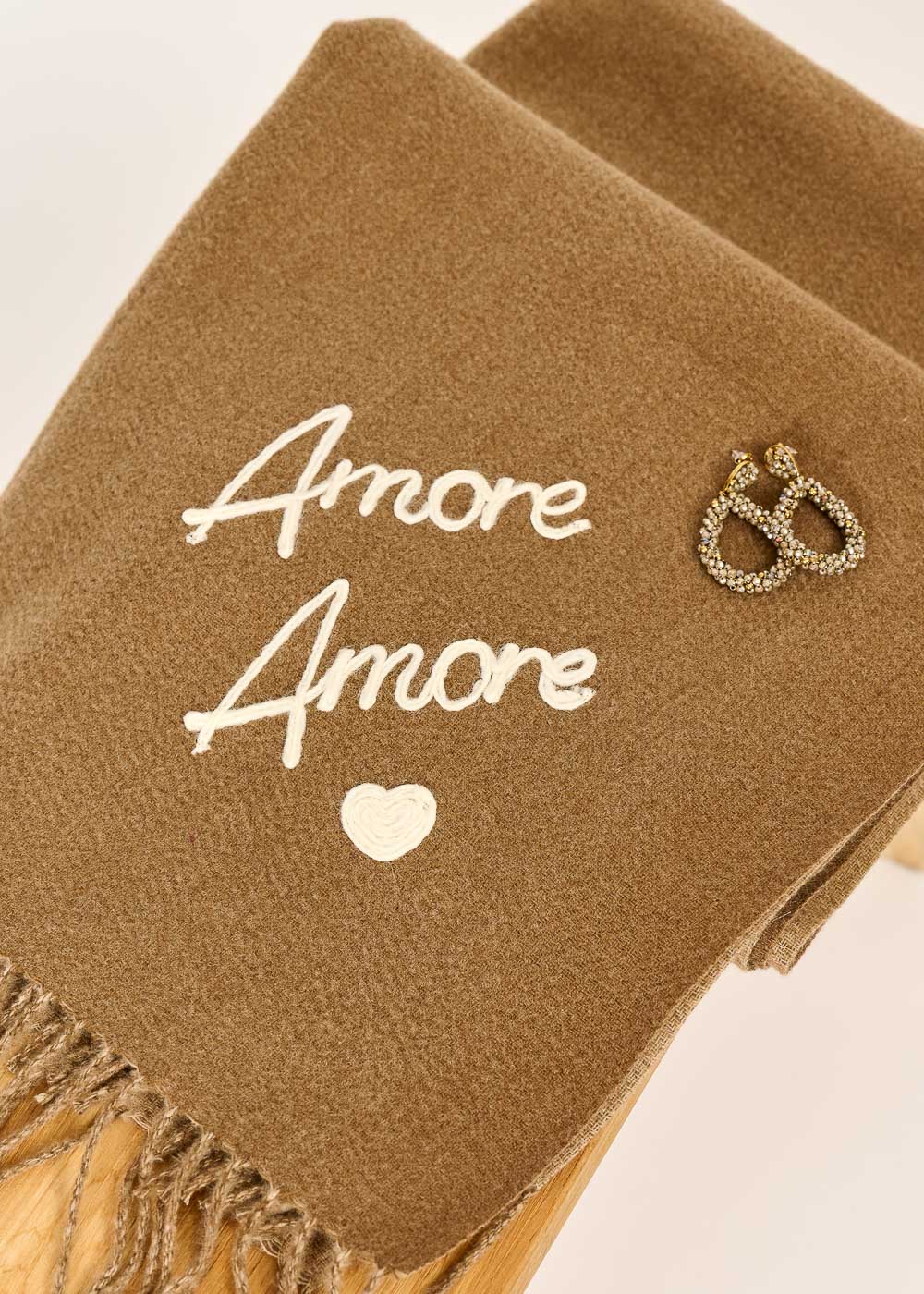 Umhüllen Sie sich mit Liebe und Luxus: Dieses edle Tuch "Sciarpa Frangia" in warmem Braun fängt mit der gestickten Botschaft "Amore Amore" die Essenz italienischer Romantik ein. Das weiche Material und die feinen Fransen garantieren einen fließenden Fall und halten Sie dabei stilvoll warm. Ob elegant über die Schultern gelegt oder lässig um den Hals gewickelt – dieses Tuch setzt ein emotionales und zugleich modisches Statement.