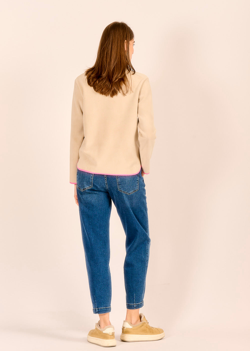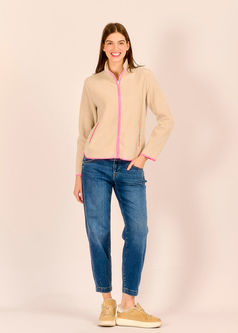 Die Fleecejacke aus Viskose schenkt dir Wärme und Geborgenheit. Dabei trifft Komfort auf zeitlosen Stil und farbliche Akzente. Die Kontrastdetails lassen das Design lebendig wirken.  Ein besonderes Stück für alle, die Komfort lieben und subtil Farbe ins Spiel bringen möchten.